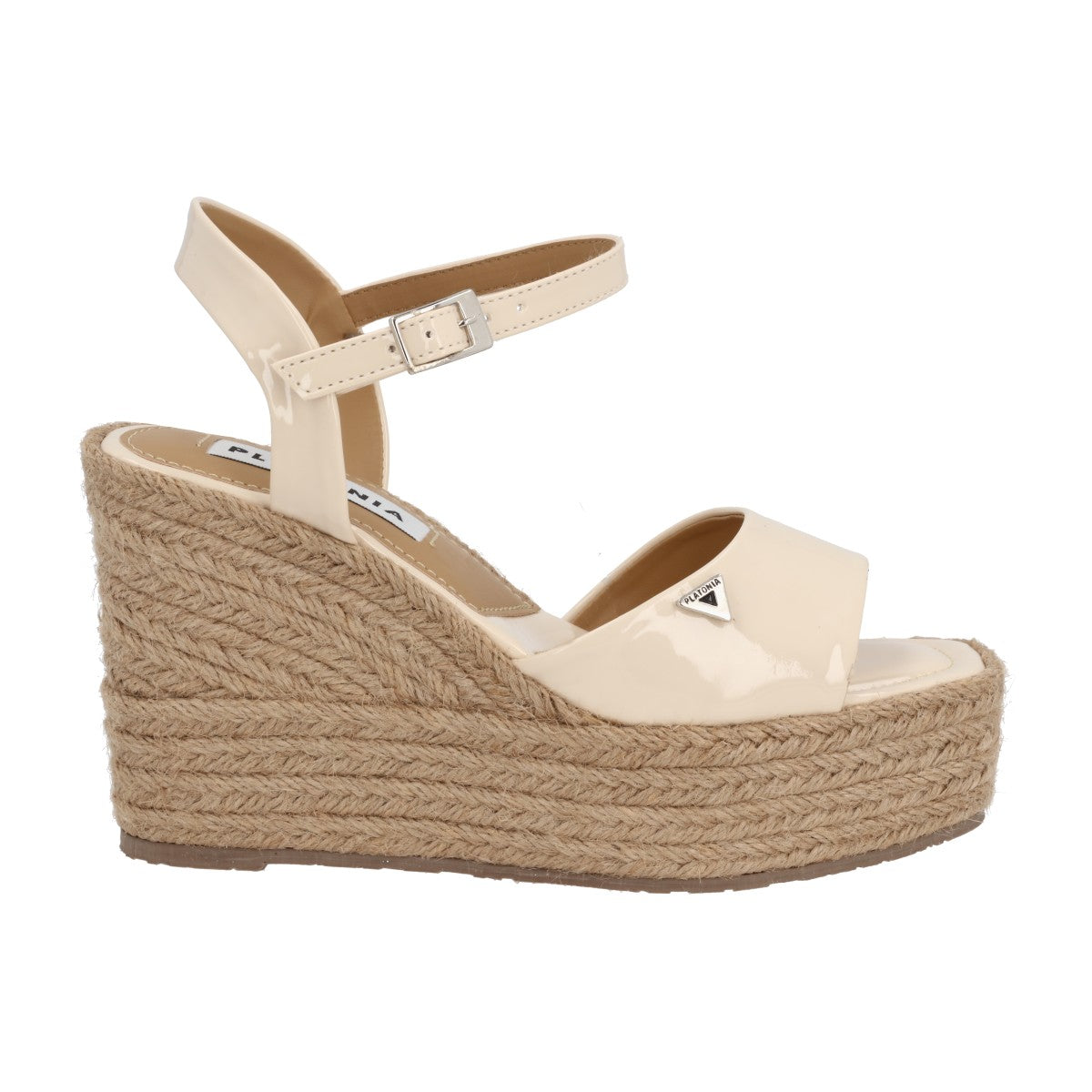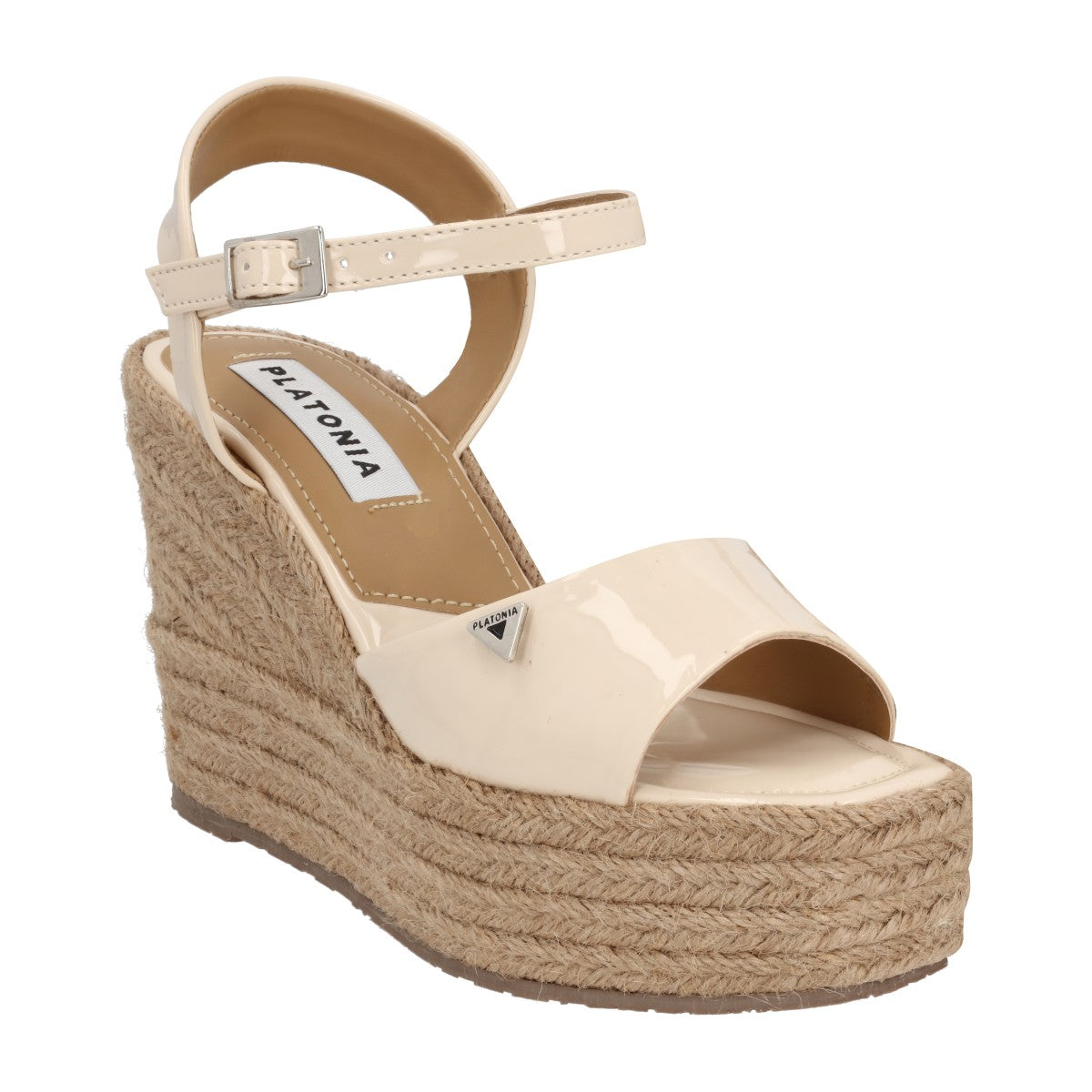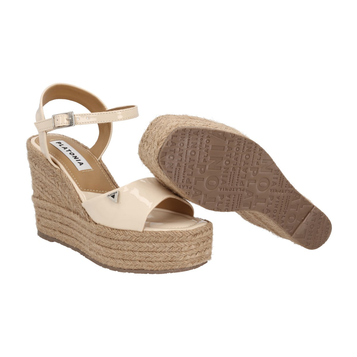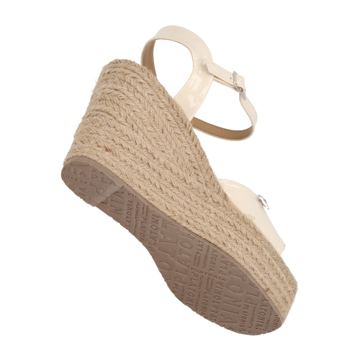 Sandalia De Plataforma Praga Con Yute Charol Premium Nude Con Látigo Ajustable Para Mujer