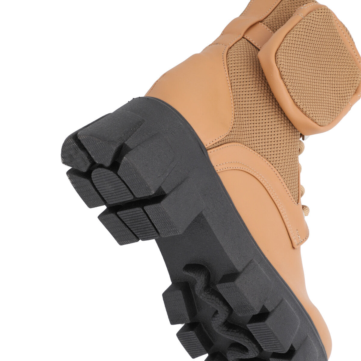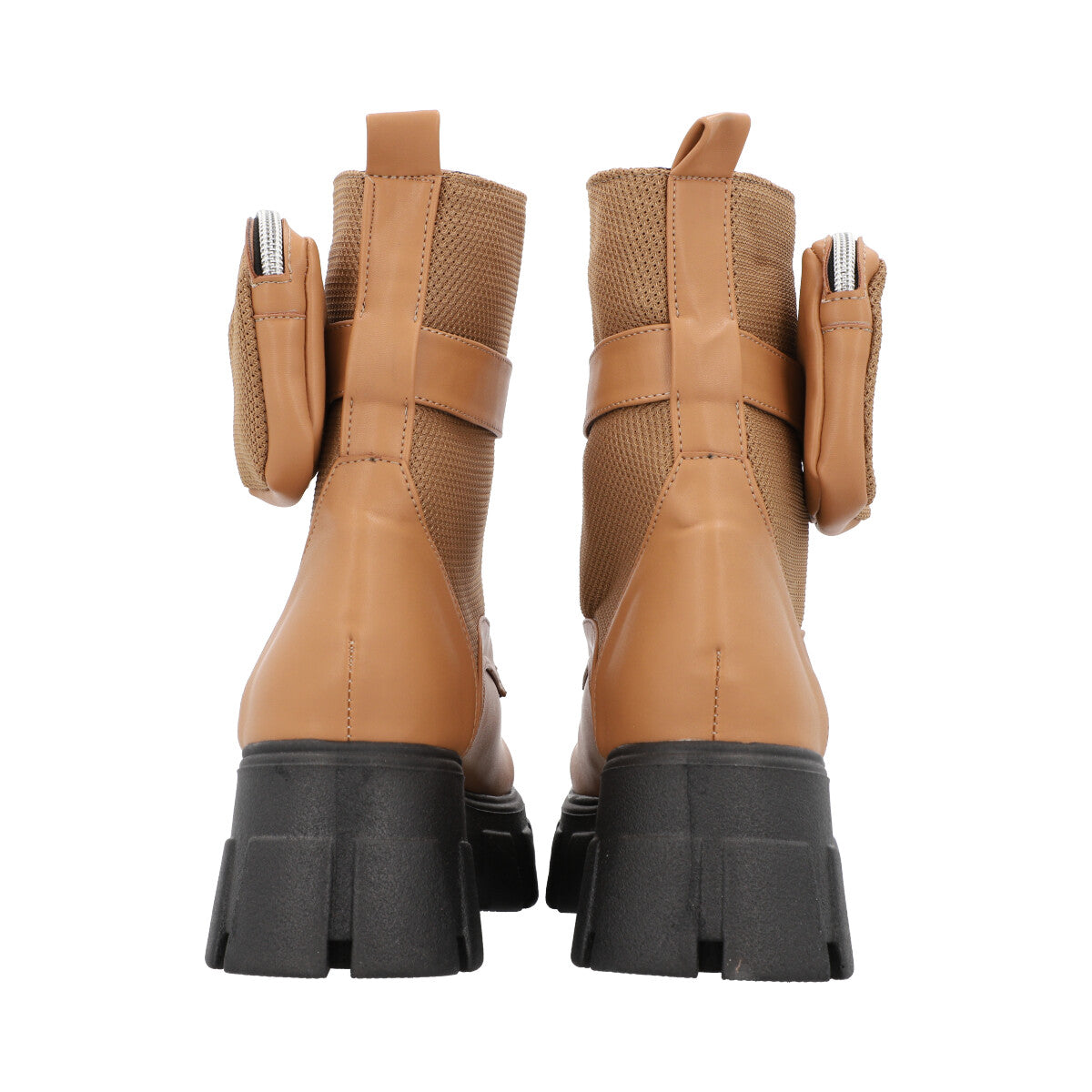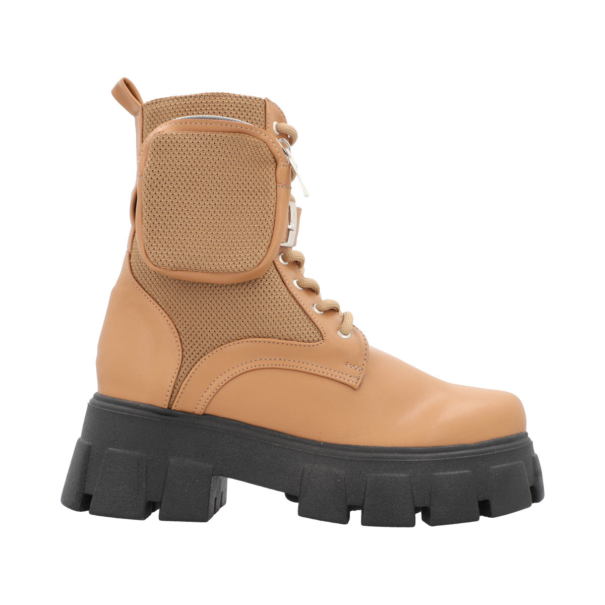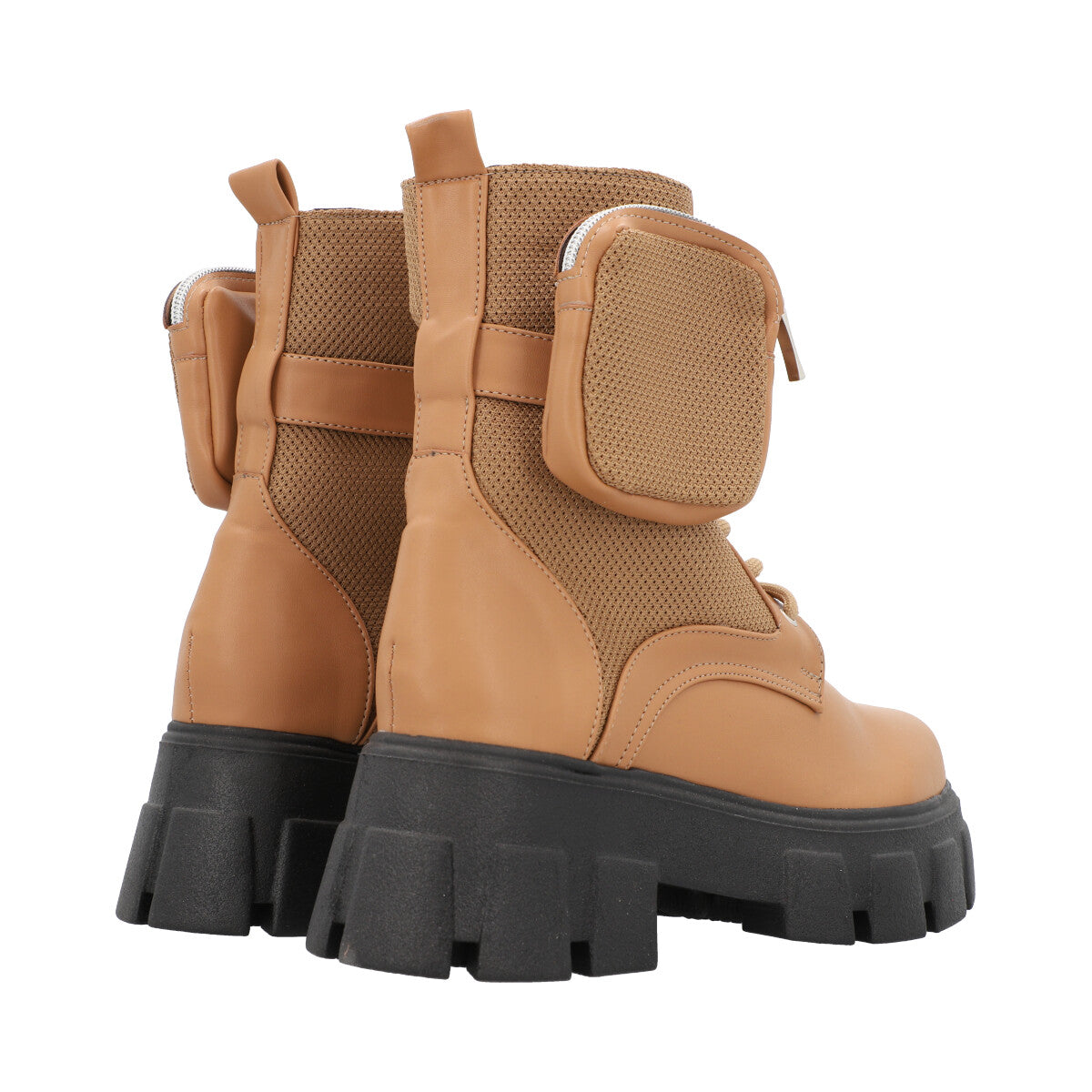 Bota tipo boots combat con suela gruesa para mujer color camel con bolsita cool con agujetas para ajuste..