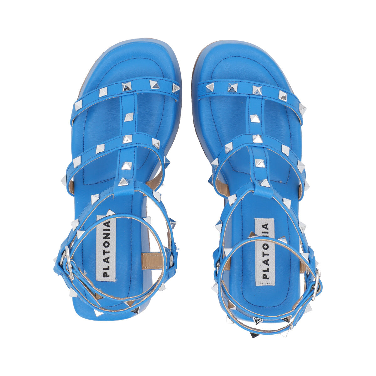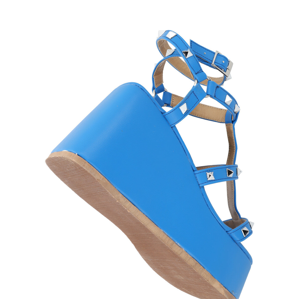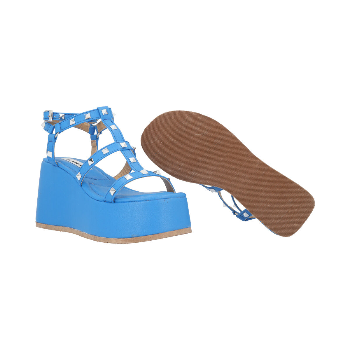 Sandalia de plataforma con estoperoles prime trendy para mujer color azul eléctrico con látigos ajustables y plantilla de memory foam.