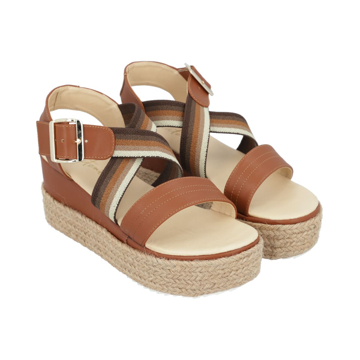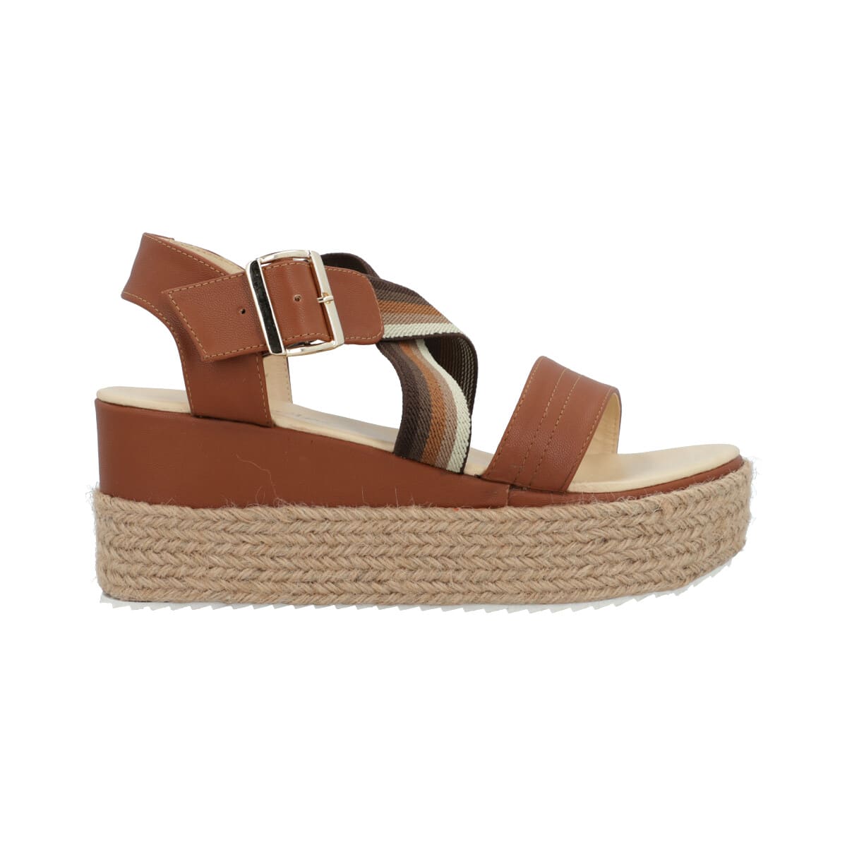 Sandalia de plataforma para mujer color camel con resorte