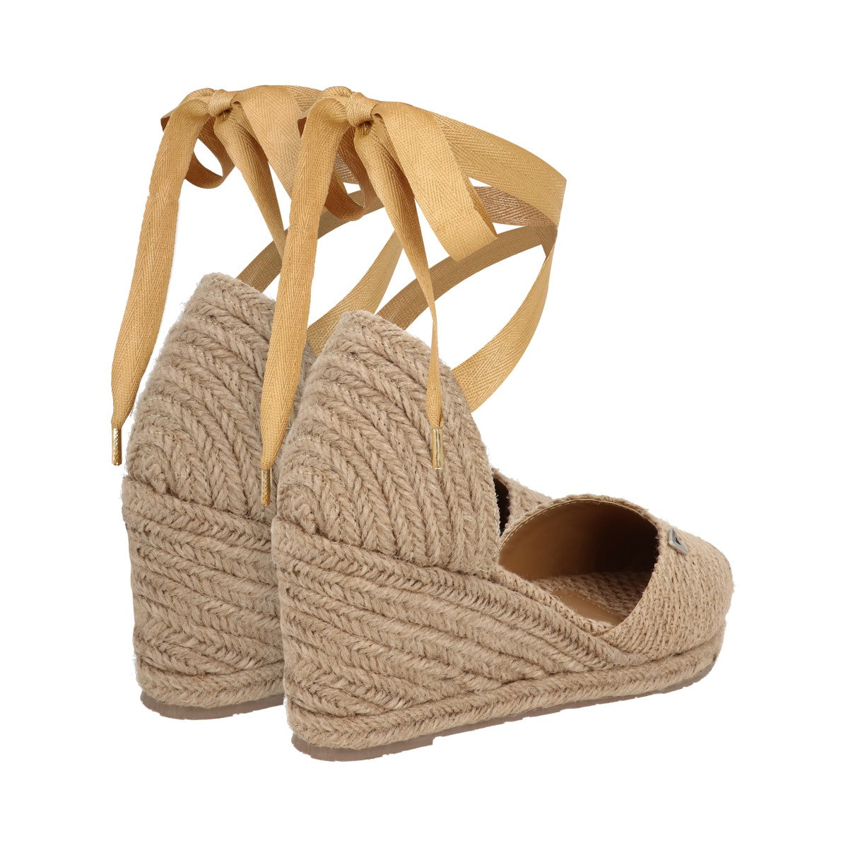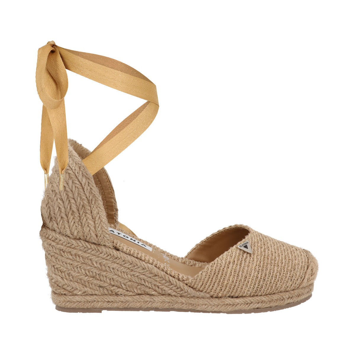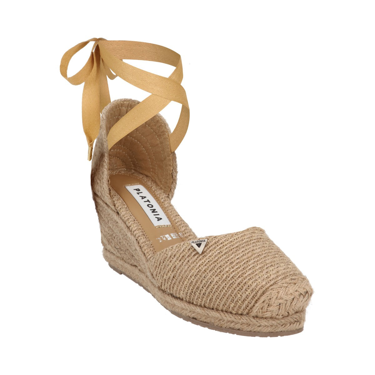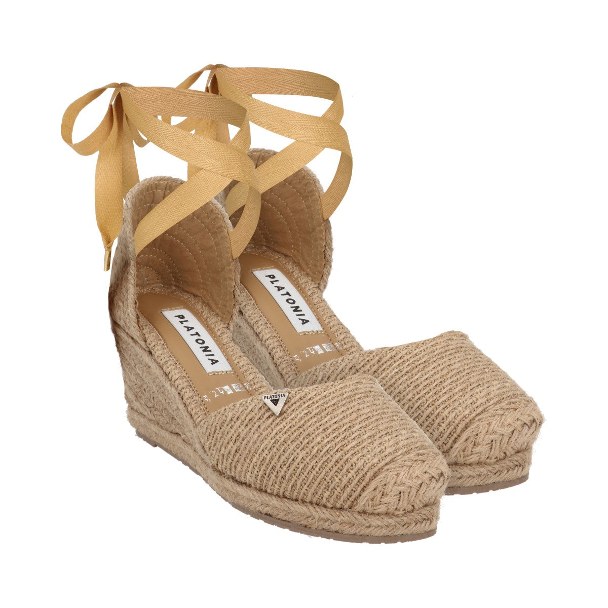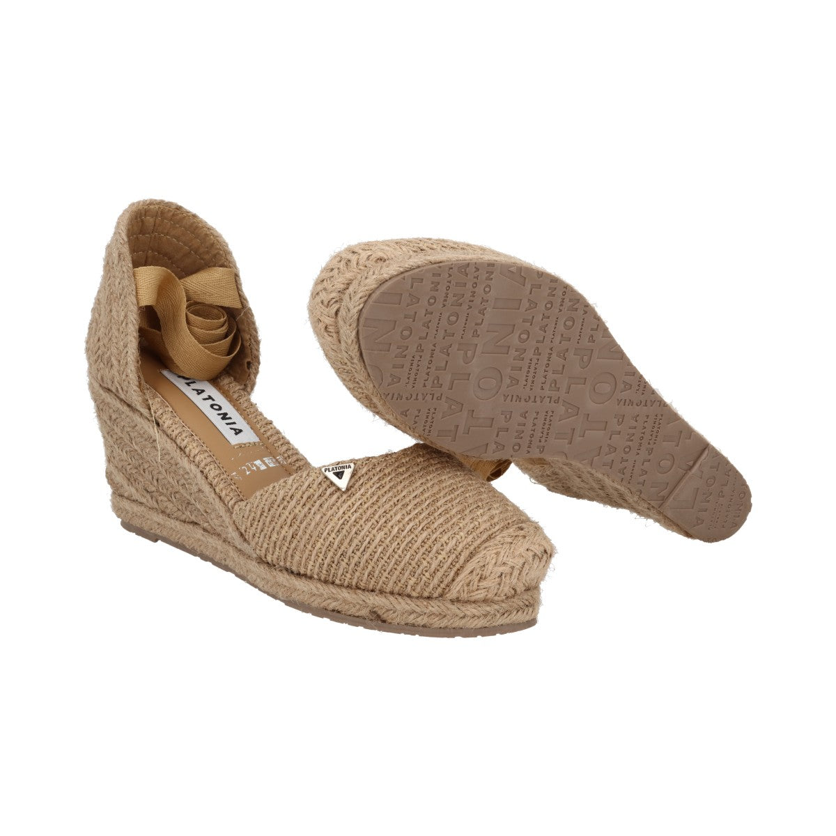 Alpargata cerrada puntal de plataforma con yute natural para mujer con listón y cordón para un ajuste estilizado en la pierna. Alpargata de yute para mujer.