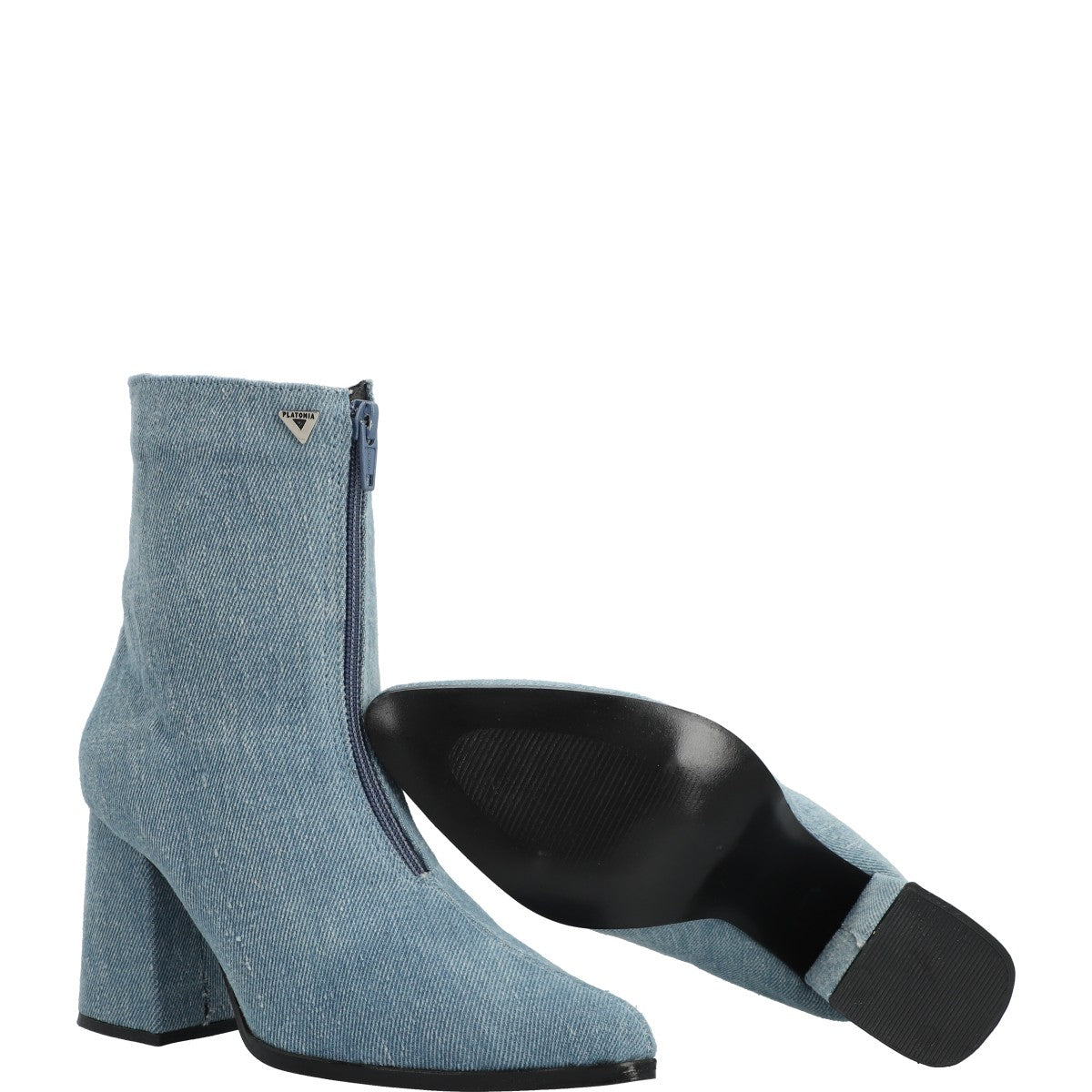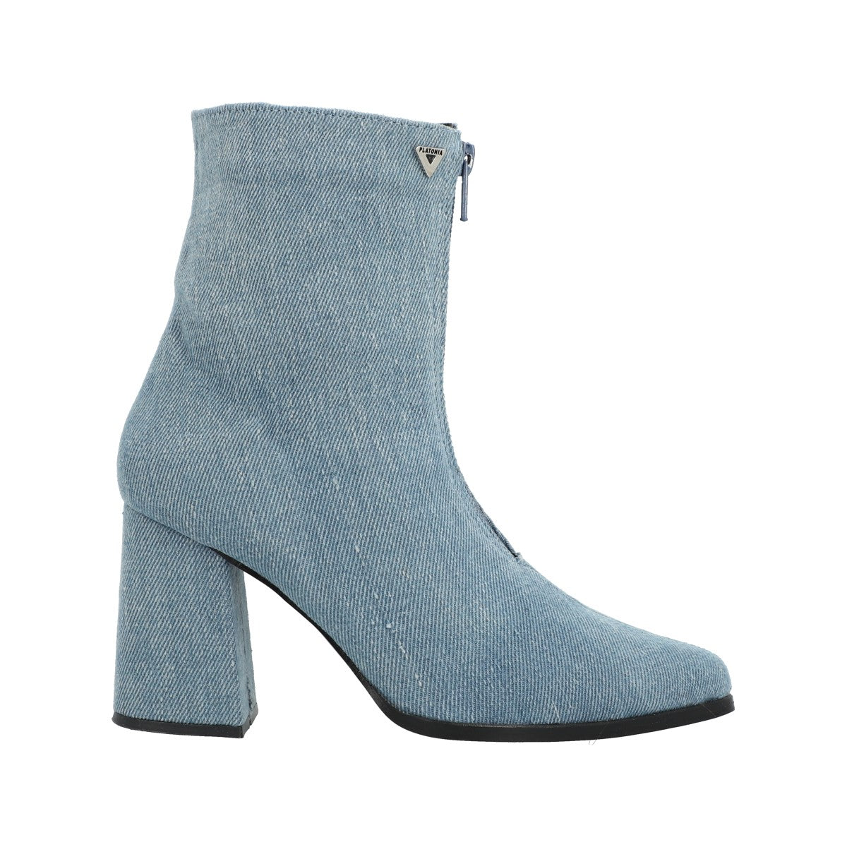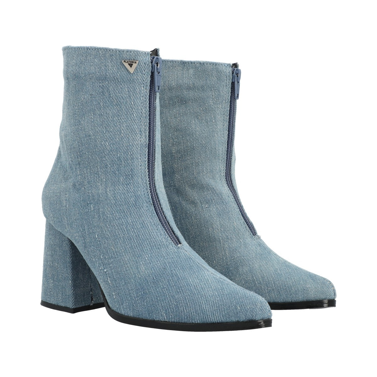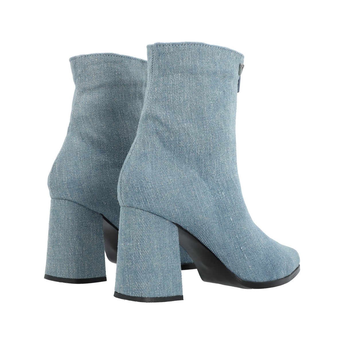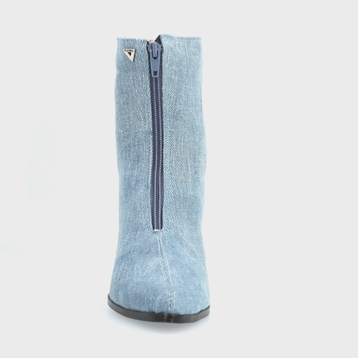Bota puntal con tacón estilizado, mezclilla demin para mujer con cierre reforzado para brindar ajuste. Botín puntal. Bota demin para mujer.