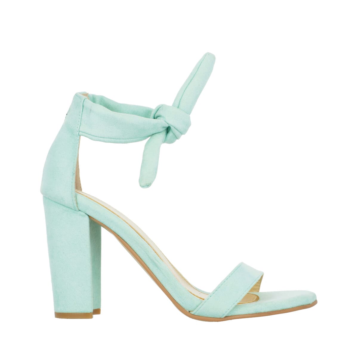 Zapatilla de tacón para mujer color aqua con aplicación de nudo en el látigo