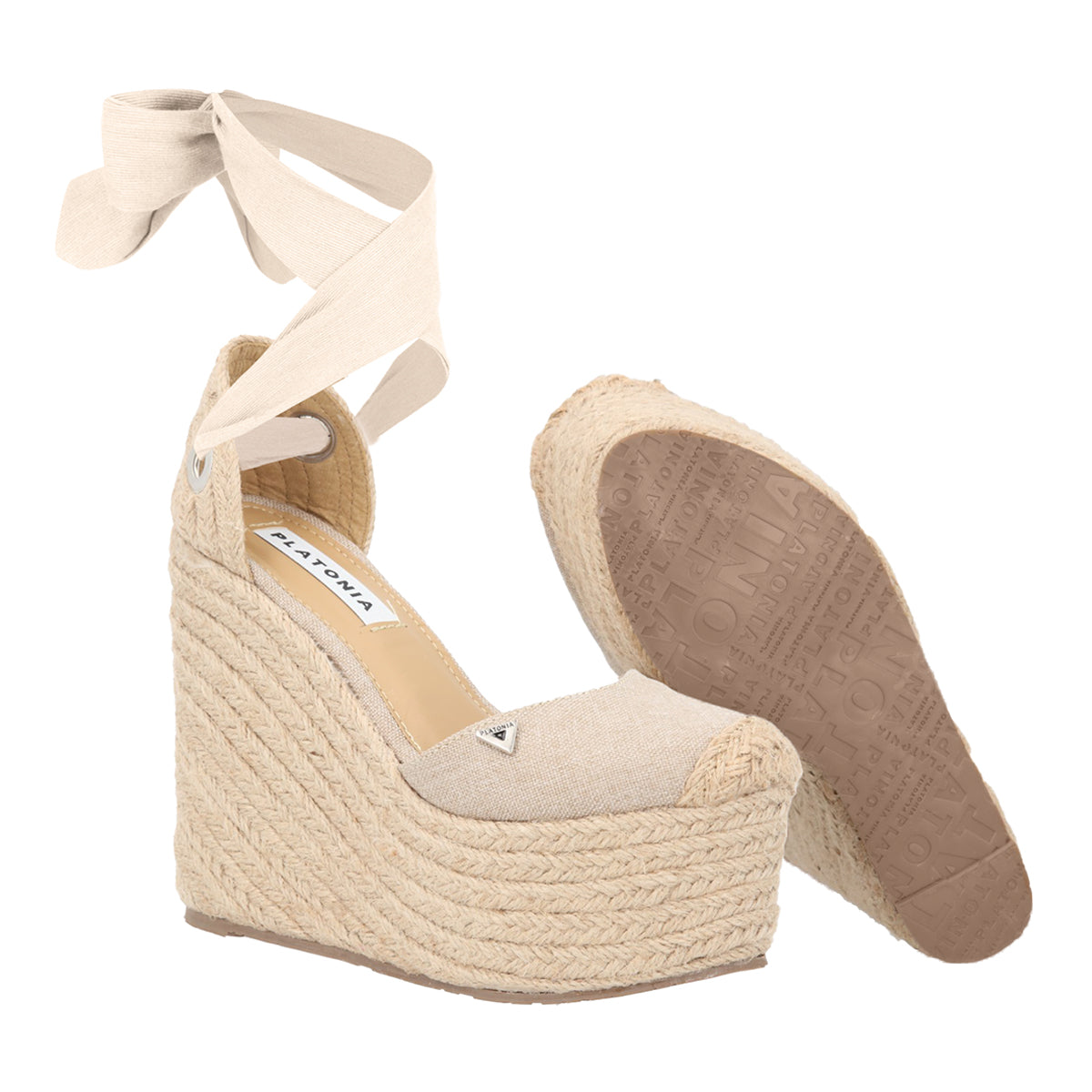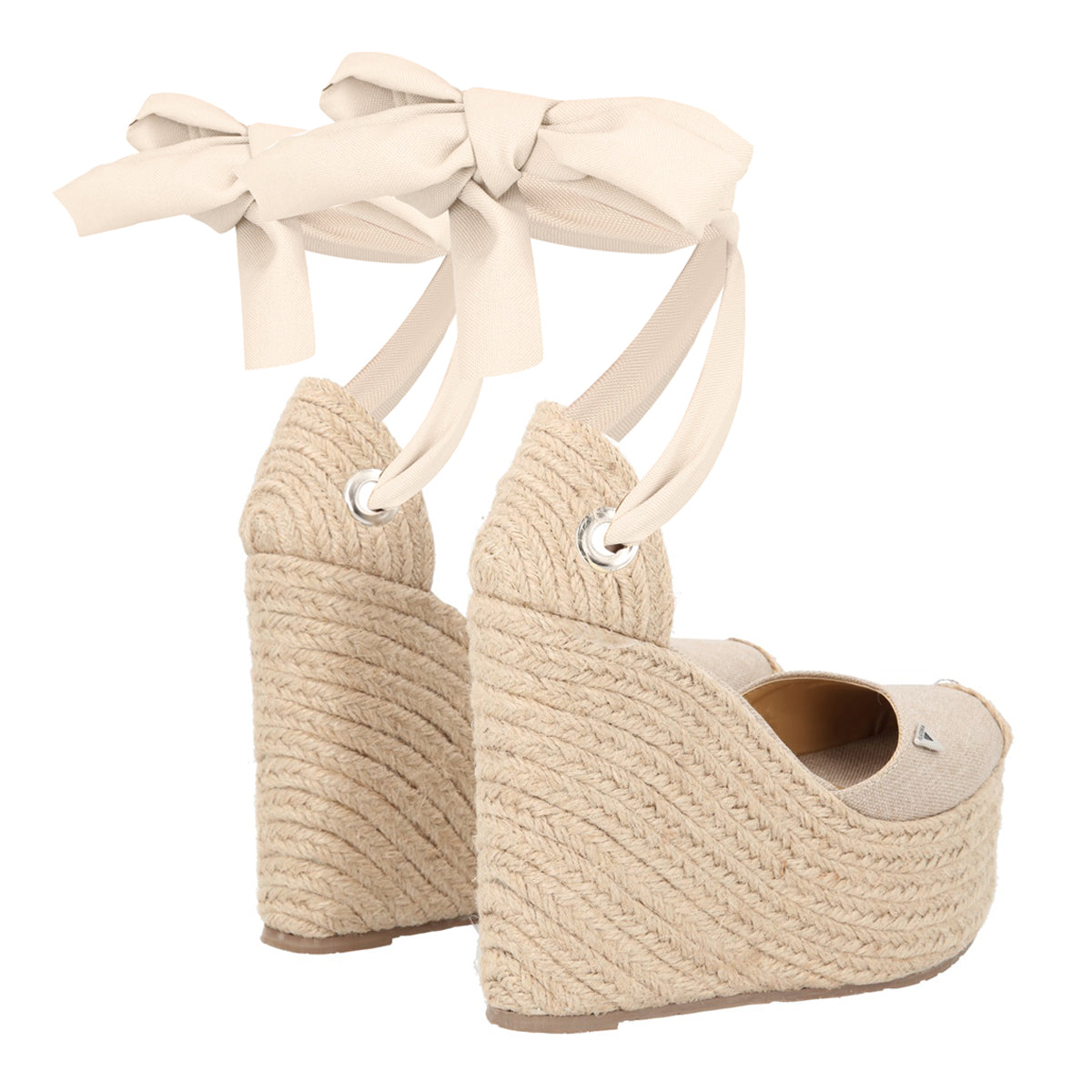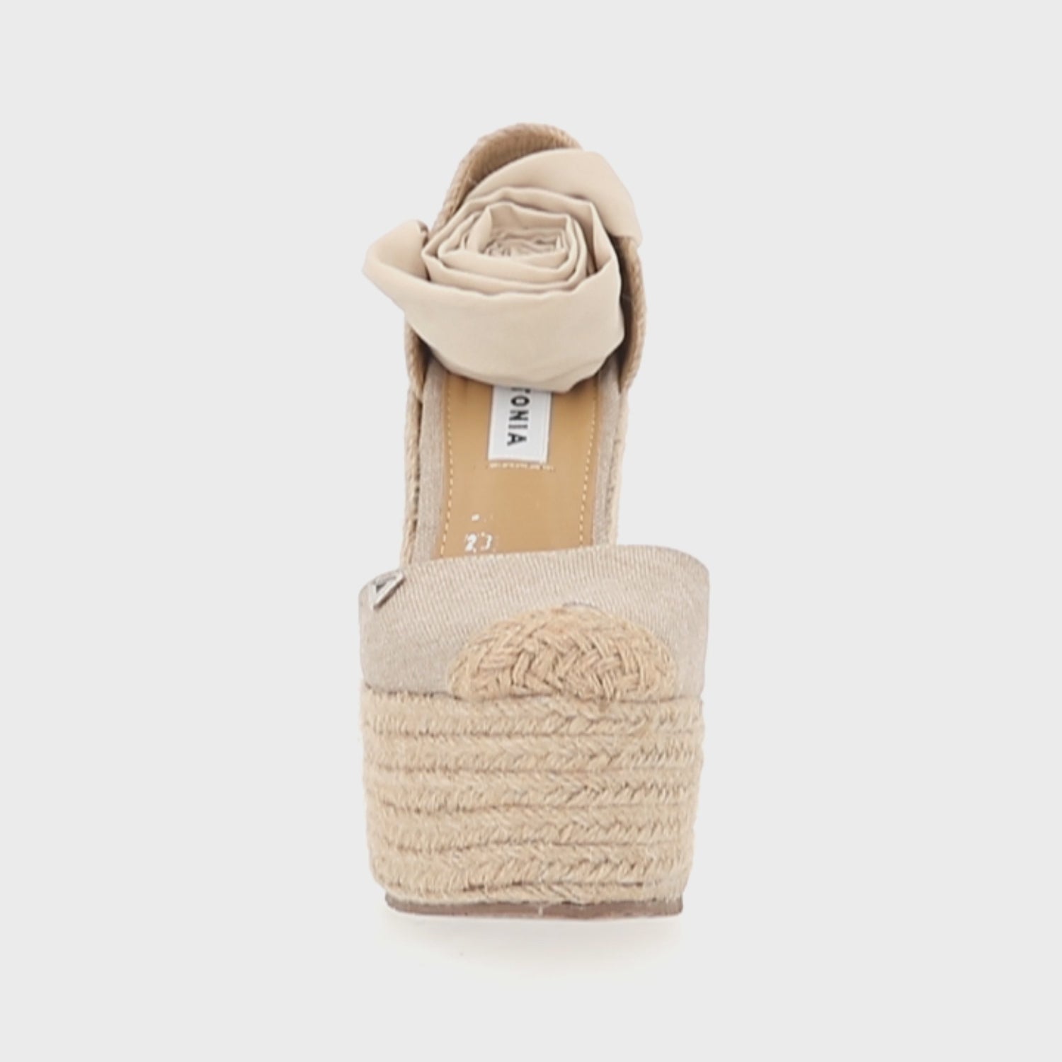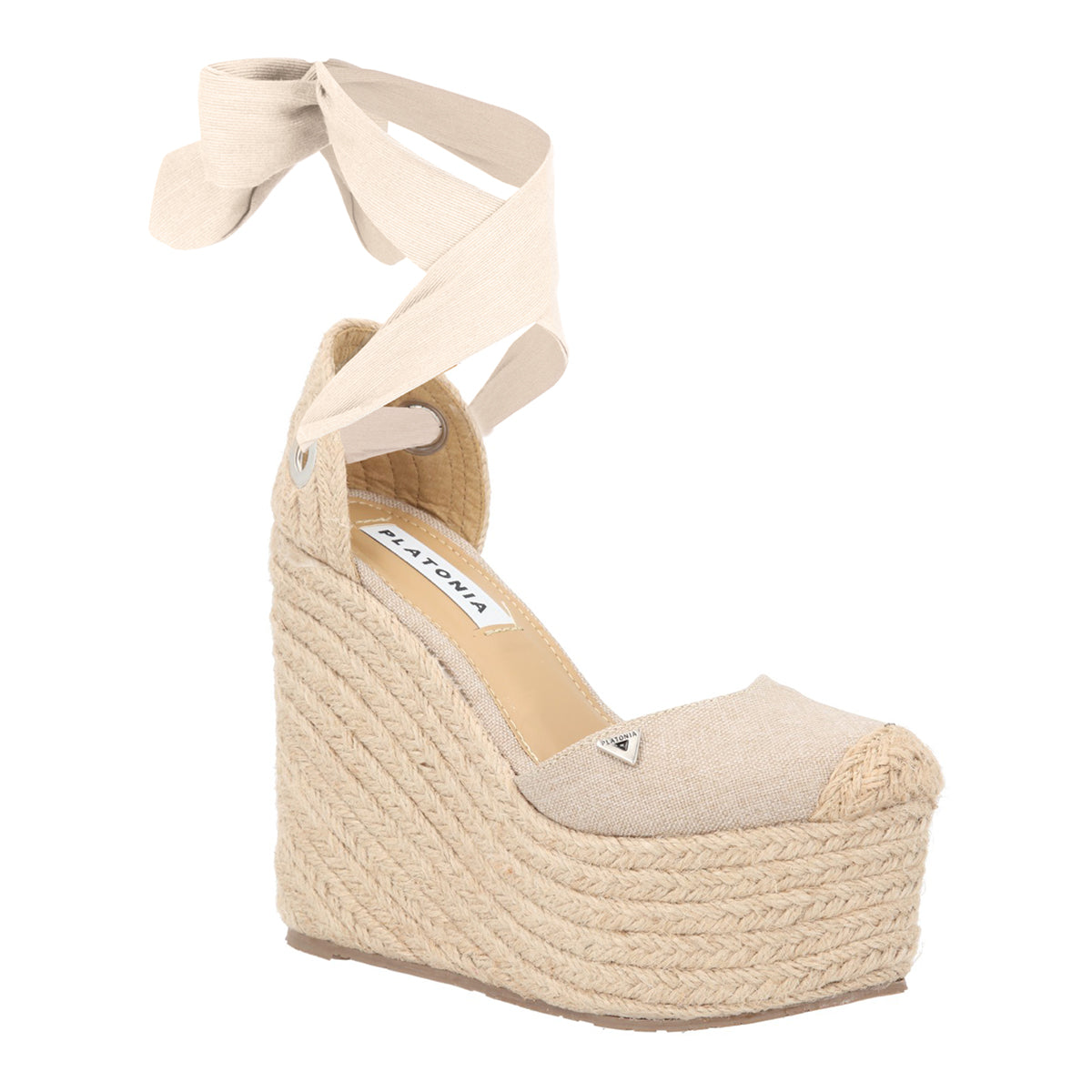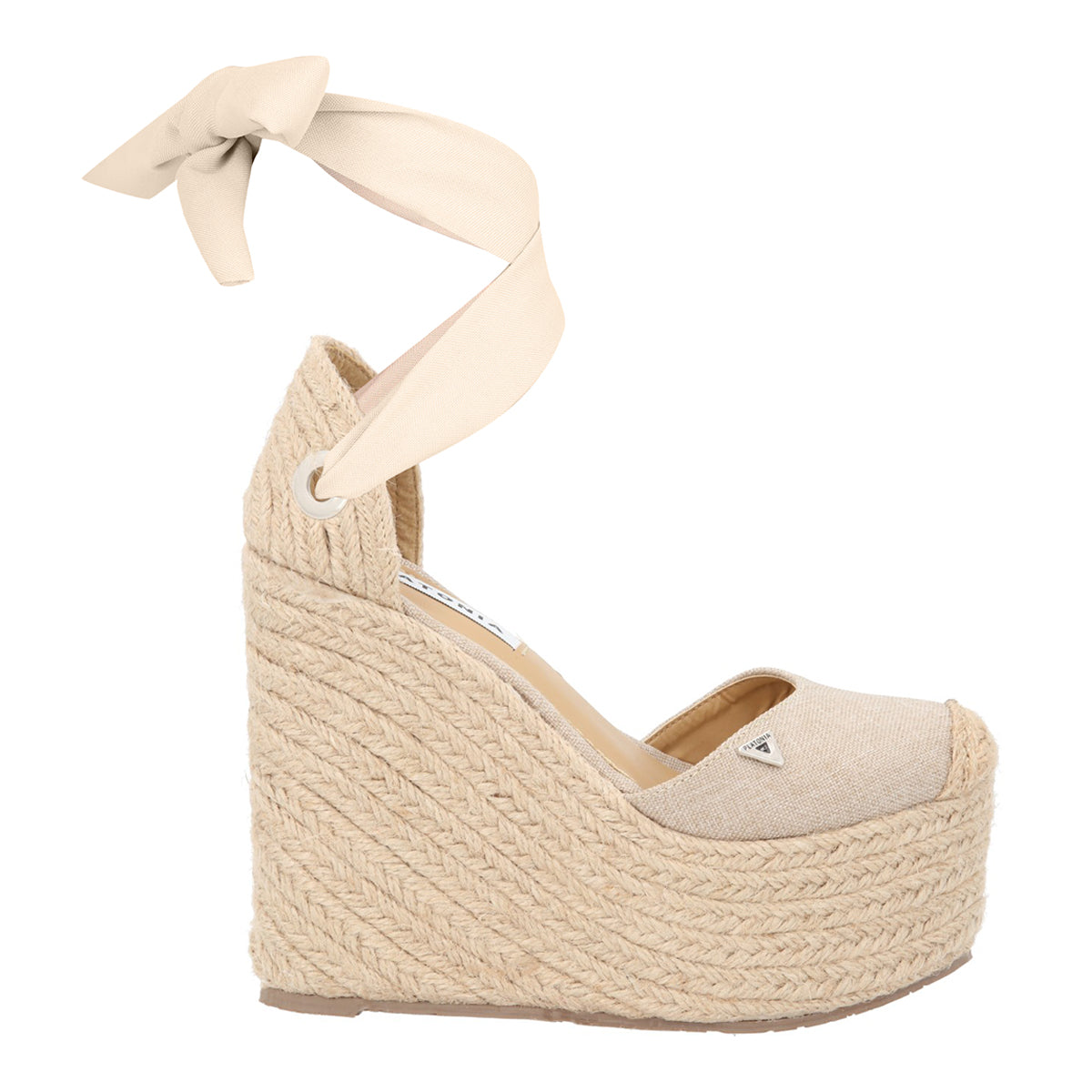 Alpargata de punta cerrada sandalia de plataforma con yute natural para mujer valeria color beige con ajuste de listón estilizado.