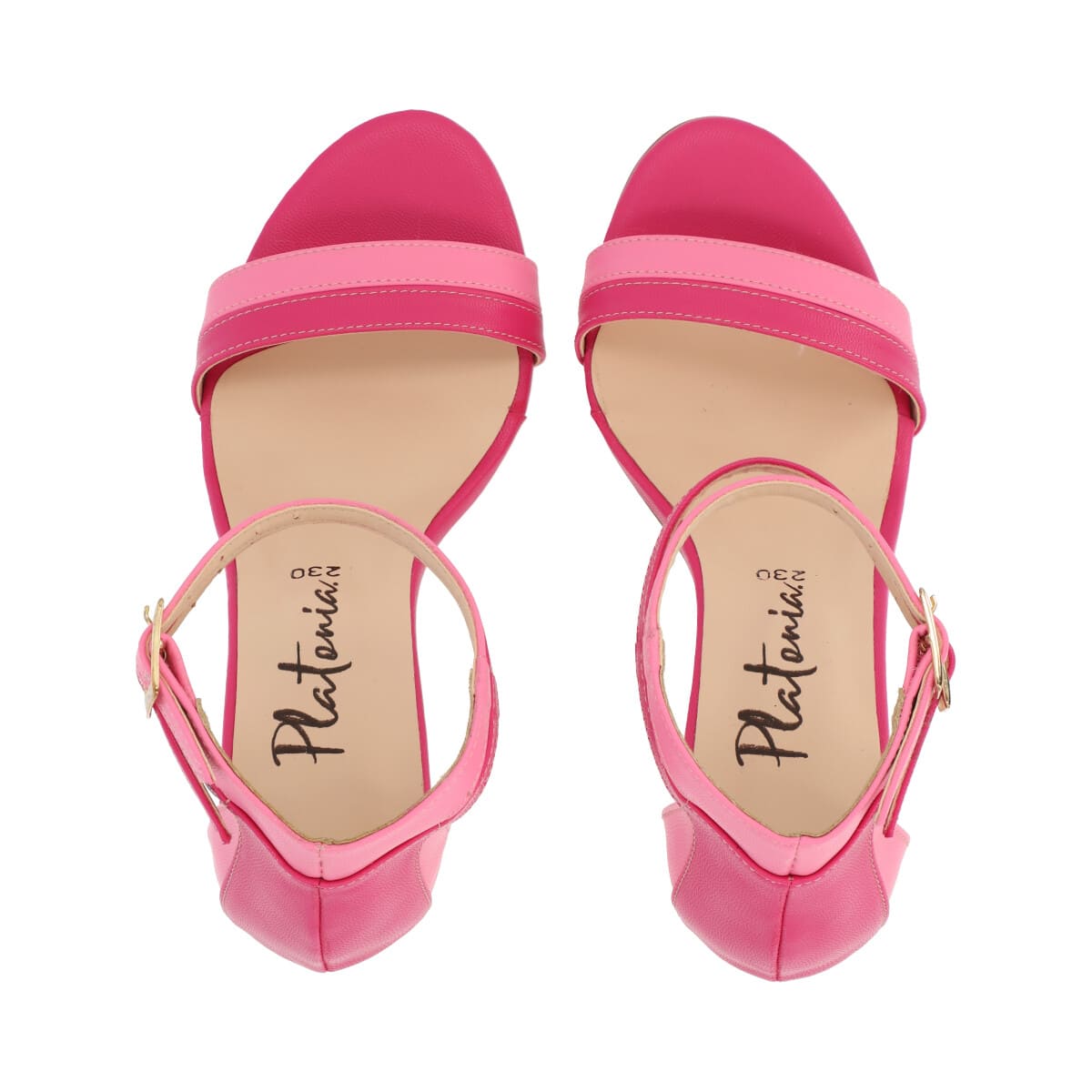 Zapatilla para mujer color flamingo con látigos ajustables para el tobillo.