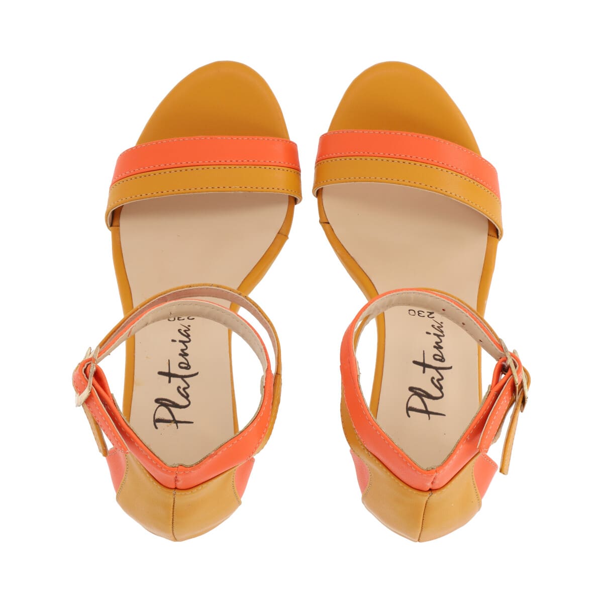Zapatilla para mujer color mostaza con látigos ajustables para el tobillo.