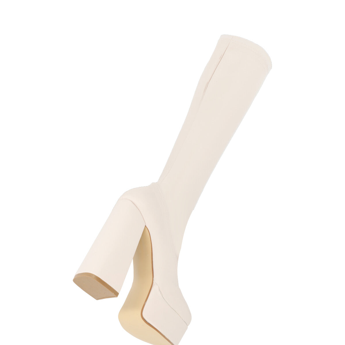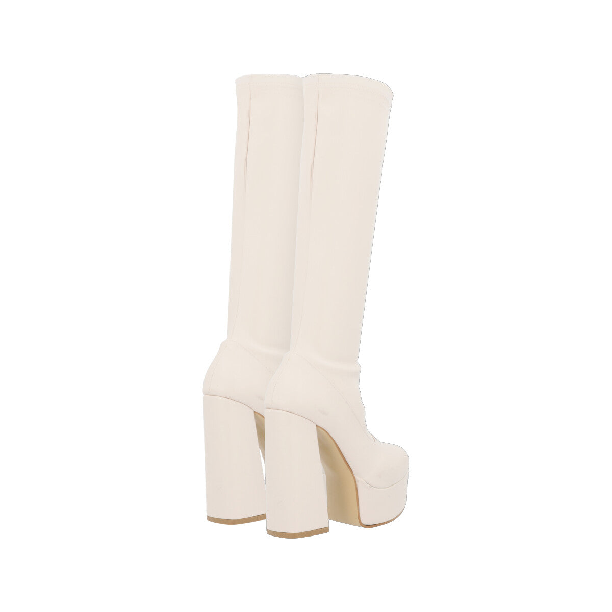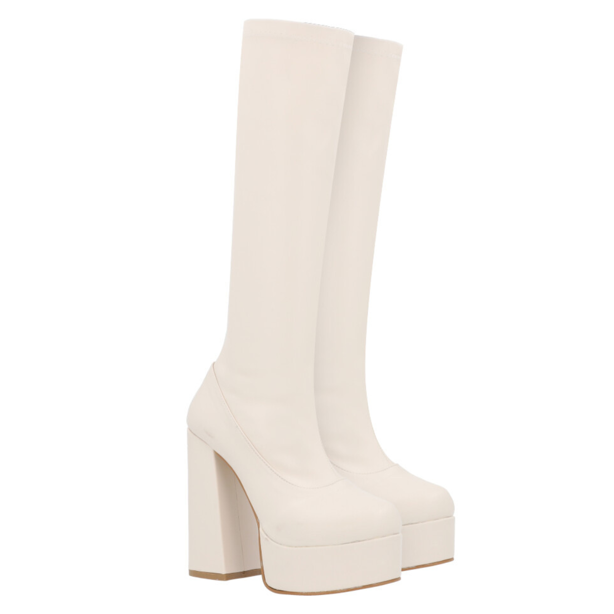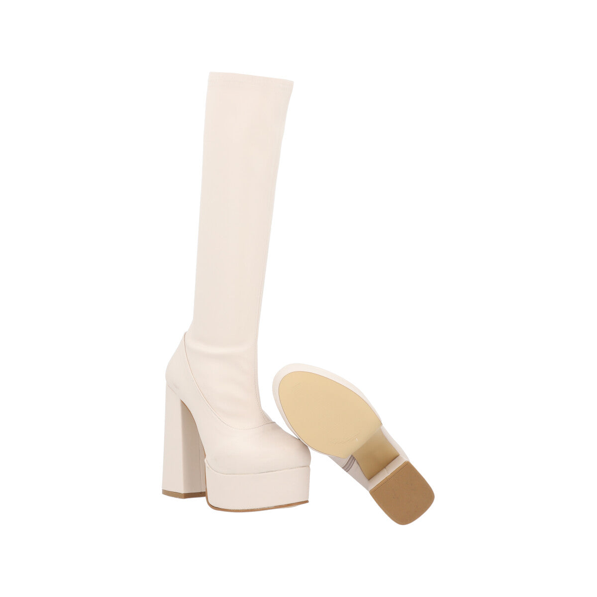 Bota larga maxi de plataforma de lycra piel sintética con tacón grueso para mujer con ajuste slim lycra y cierre reforzado.